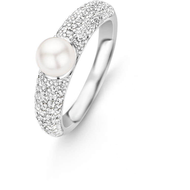 Anello Da Donna Della Marca Ti Sento – Milano. Anello Realizzato In Argento 925 Con Placcatura Al Rodio. Gioiello Con Madreperla Di Colore Madreperla.